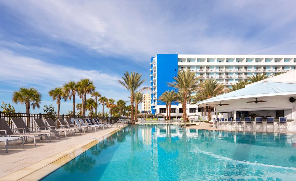 Located on ten acres of white sandy beach, Hilton Clearwater Beach Resort overlooks the picturesque Gulf of Mexico. Relax by the gulf-front pool or take in the Florida sun from your private beach cabana. A short drive from both airports, the resort delivers family fun and comfort with a full list of amenities, water and beach sports and a Kids' Club program. Book a fishing trip or sail on a private charter from a nearby marina. For more family fun, take a short drive to numerous attractions and activities in the Tampa and St. Petersburg areas.There are many dining options available on the property suitable for casual beach attire. Laid-back Reflections overlooks the Gulf of Mexico and is open for breakfast, lunch and dinner. Sand Bar & Grill features poolside dining for lunch and dinner (weather permitting). The Tiki Bar/Hut provides a playful setting to enjoy drinks while relaxing on the beach. Coasters Lounge features a morning coffee bar, light lunch, appetizers and late night menu. Sundries and sunscreen can be found at the on-site gift shop and clothing store. Coin laundry is also available on the property.Hotel rooms and suites are styled for comfort and are non-smoking. Guests can choose from rooms or suites with king beds, living, dining and bedroom combinations. Suites include dining area for four, living area with sleeper sofa, microwave, refrigerator, coffee maker and balconies. All guestrooms include a full bathtub and shower, plus air-conditioning, 32-inch flat-screen TV with pay-per-view movies, high-speed wireless Internet access, alarm clock radio with MP3 capability, complimentary in-room safe, work desk, mini-refrigerator, coffee maker with coffee, iron with ironing board and cotton bathrobes. Each room features items from the Serenity bedding collection and bathrooms offer La Source amenities created exclusively for Hilton by Crabtree and Evelyn.
